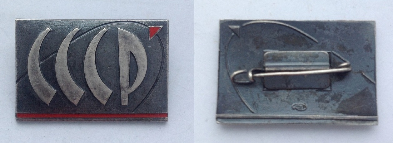 XX.7. Четырехугольник размером 10х15 мм. Нижняя его сторона выгнута наружу. Внизу изображен стилизованный земной шар с пятиконечной звездой, опоясанный витками орбит. Одна из орбит уходит вверх и оканчивается ракетой с развевающимся флагом. Вверху слева проставлена надпись: «СССР». Флаг и звезда покрыты красной эмалью Анод. ал. Бул. Поб.