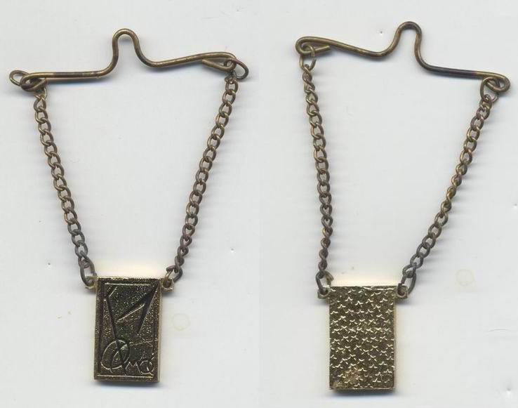 По-моему, это сборка, хоть колодка и неплохо подобрана к подвеске. На мой взгляд, подвеска от брелка или чего-то аналогичного. Обратная сторона её не похожа на реверс известного подобного значка. Может кто-нибудь встречал такую колодку и подвеску?