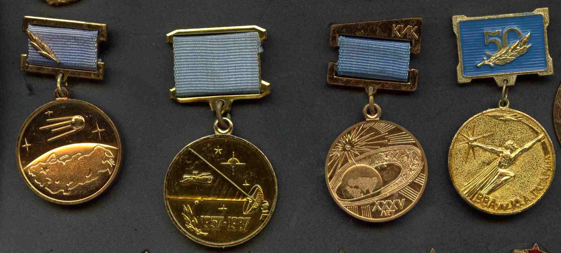 Судьба многих знаков неизвестна, о ней можно только догадываться по надписям на самой медали. Добавлю пару своих медалей по космонавтике.