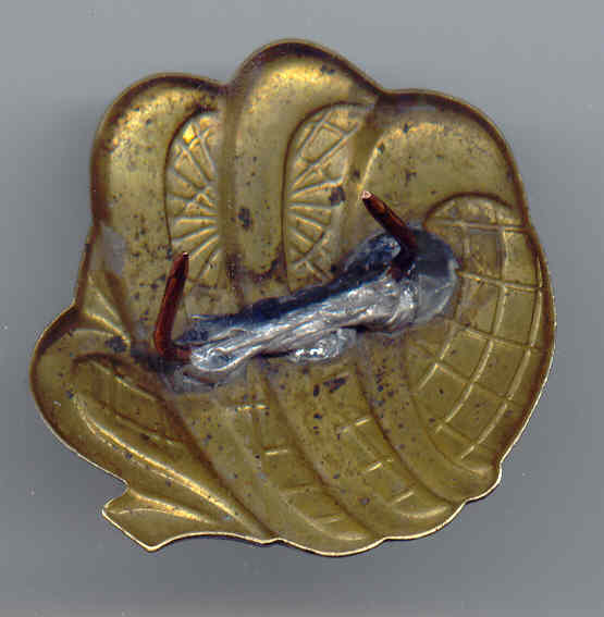 С другой стороны, на приведенном скане обратной стороны видно, что булавка крепится не методом контактной сварки (что типично для тяжелых знаков), а чем-то похожим на клей. Следы ремонта?