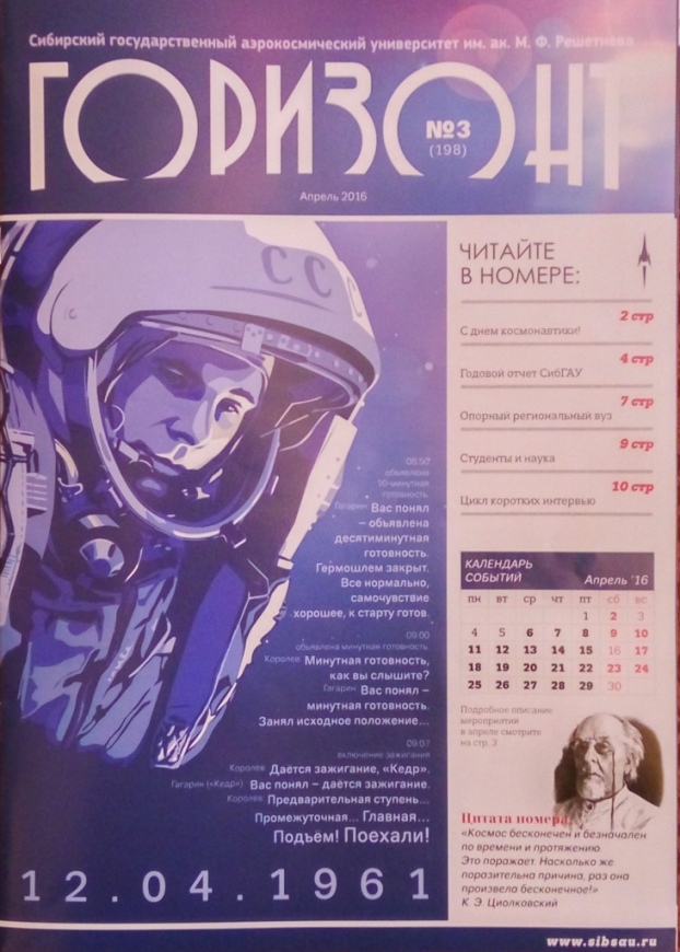 Не все у нас в Красноярске знают,но у нас есть музей ракетно-космической техники- учебно-демонстрационный центр РКТ при Сибирском государственном аэрокосмическом университете (СИБГАУ).Он расположен по адресу: Красноярск,ул.26 Бакинских комисаров,9А.С 10.11. по 13.11.15г. в Красноярске проводится 19 Международная научно-практическая конференция,посвященная 55-летию СИБГАУ им. академика