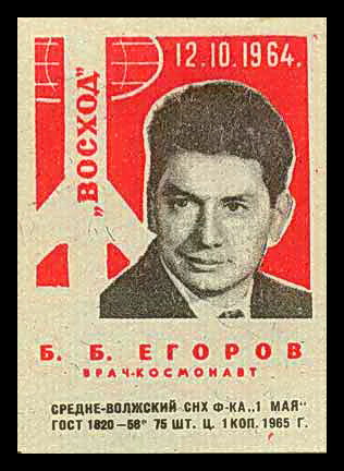 A.Joker писал(а) :Комаров В.М., Феоктистов К.П., Егоров Б.Б. Экипаж КК "ВОСХОД". Привлж.СНХ и Белорус.СНХ г.Борисов 1965г.