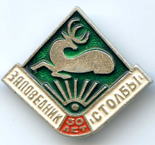 Значок 150 лет столбизму. Напрямую связан с заповедником. Выдавался активистам.