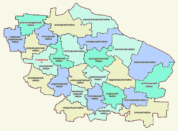 Андроповский район - район образован в феврале 1924 года из волостей и сел части бывшего Александровского уезда Ставропольской губернии. Центром был поселок Курсавский, давший первоначальное название району.