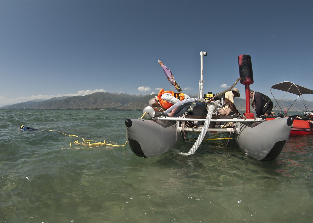 Раскопки на дне озера Иссык-Куль ведутся с 50-х годов прошлого века. И первая экспедиция водолазов "СКАТа" состоялась в Киргизии в 1962г — аквалангисты помогали археологам Академии наук СССР. После перестройки сотрудничество прекратилось.