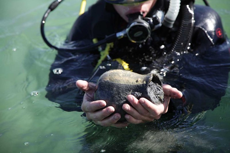 Аквалангистам удалось поднять со дна множество находок - целый керамический сосуд, большое количество черепков, металлические подвески и нашивки и другие артефакты. Руководитель группы отметил, что это остатки скифского поселения, ранее не известного ученым.