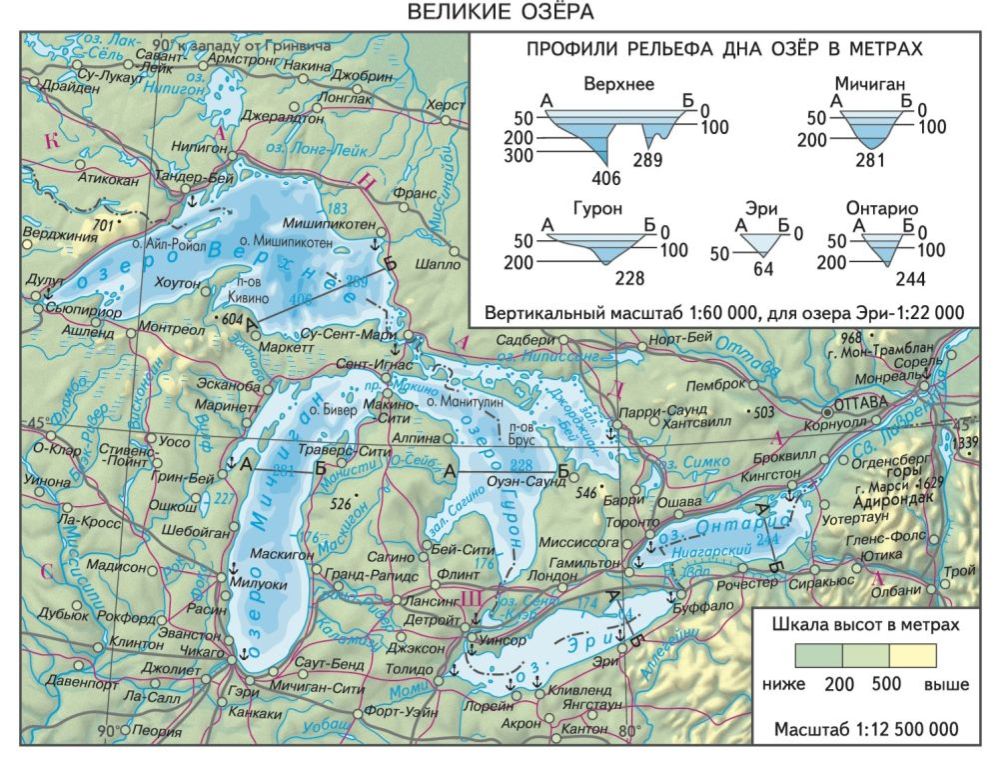 ВЕЛИКИЕ ОЗЁРА (Great Lakes), крупнейшая в мире озёрная система в восточной части Северной Америки, в бассейне реки Святого Лаврентия. Включает пресноводные озёра Верхнее, Мичиган, Гурон, Эри и Онтарио. Озёра соединены между собой короткими, порожистыми и многоводными реками.