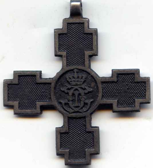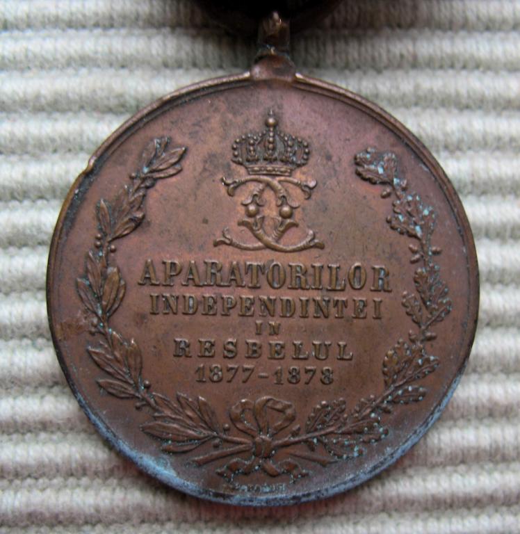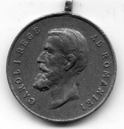 Аверс ; крест наложенный на венок дубовых веток с круговым медальоном в центре , профиль короля Карола I смотрящего на лево и надпись по кругу медальона «KAROL I . DOMN АL. ROMANIEI» (Карол I Принц) Румынии).
