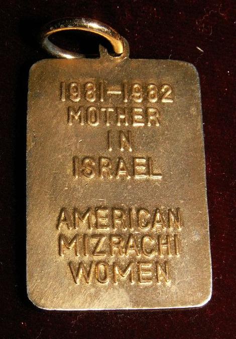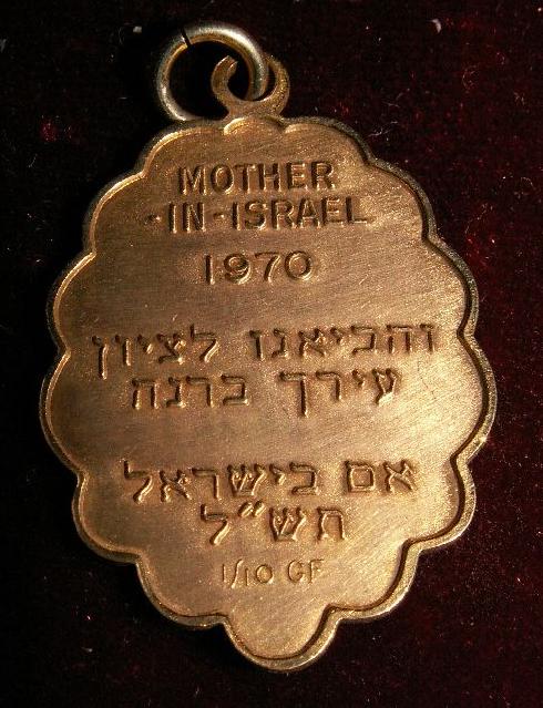 Основная масса значков, медалей и медальонов по теме даёт американская женская организация "MIZRACHI WOMEN'S ORGANIZATION OF AMERICA". Как правило это медали и знаки "материнской" серии - "MOTHER IN ISRAEL".но начнем именно с отцовской медали - "FATHER IN ISRAEL"