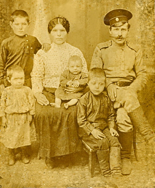 9. Андронов Исай Иванович с родной сестрой Феклой Ивановной и её детьми. Моя прабабушка, и бабушка, среди малых. 1916-1917.