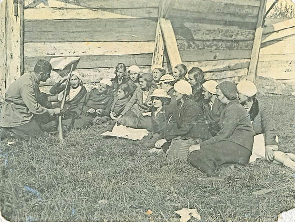 2. Полевые занятия по военной подготовке для жен ком.состава, 1934 год. Молодая и красивая в солнечных очках и шляпке, моя бабушка. Если присмотреться у нее на лацкане ГТО и Ворошиловский стрелок!