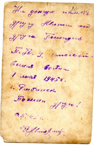 На обороте фото надпись: