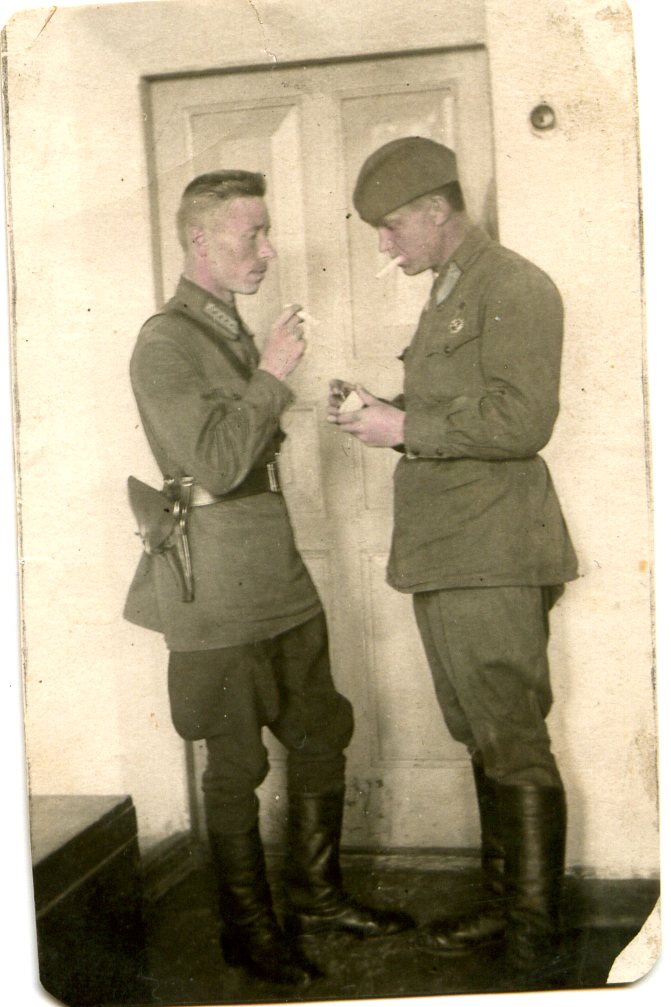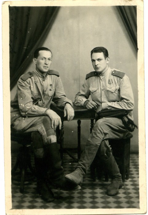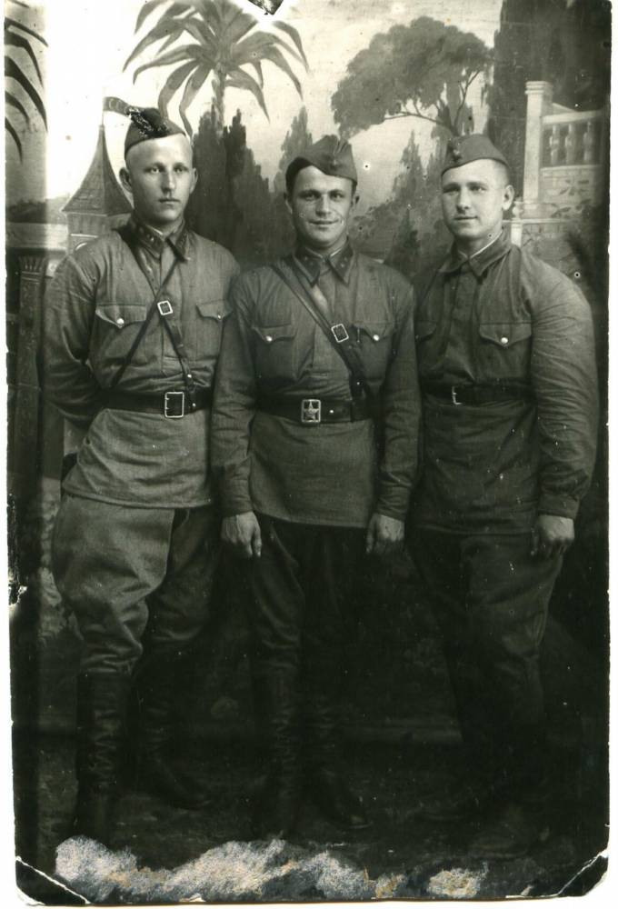 Нашивки на гимнастёрке: мл. командный состав, пехота или инж. войска.