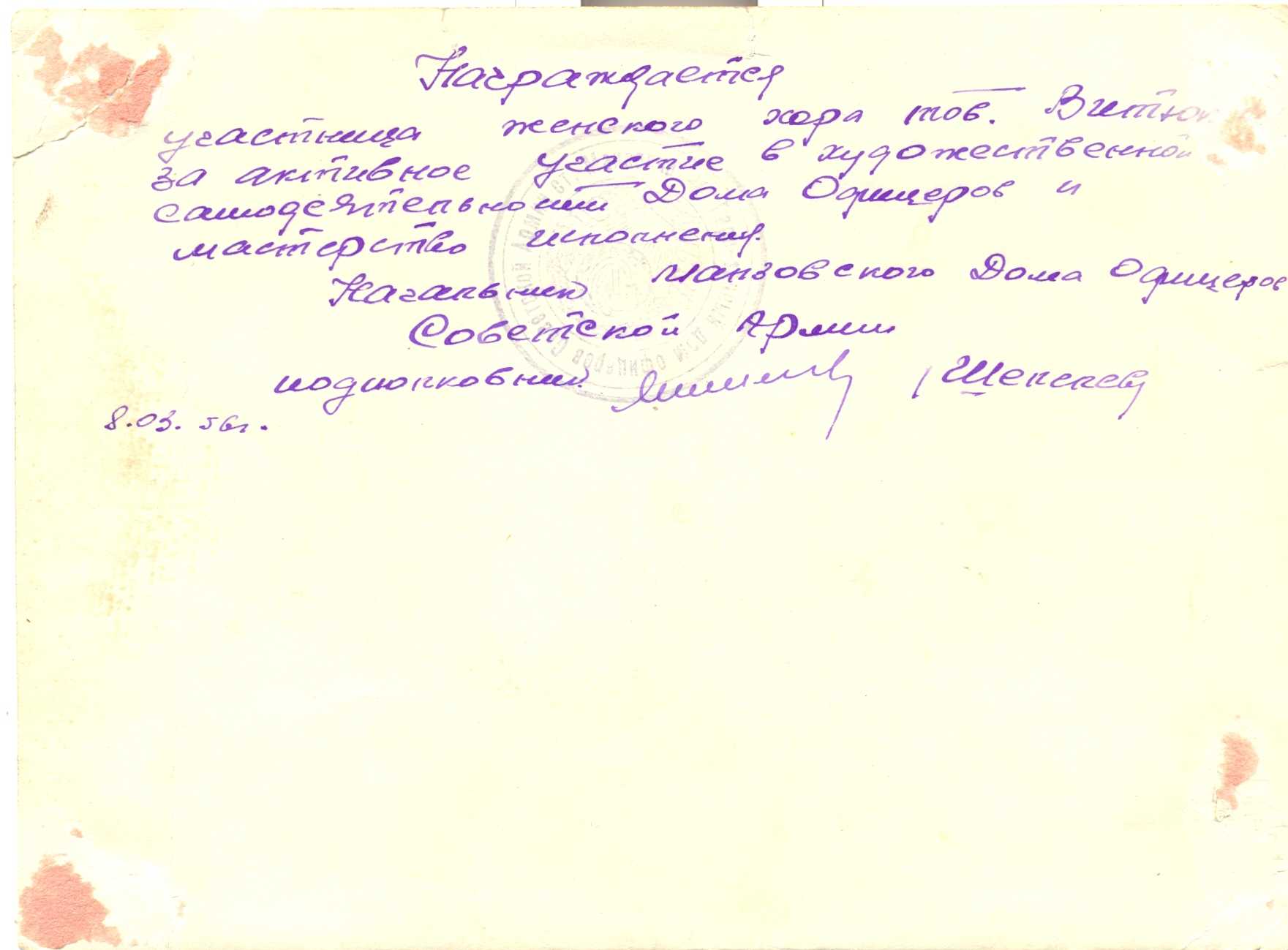 и отправлялось родителям награжденного с надписью на обороте, от командования ... с печатью части.