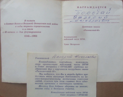Вместе со знаком шло вот такое удостоверение.Стас КСЛ писал(а) Пт, 25 окт 2013 11:31:57: ↑ 1-й отдельный Тильзитский ордена Красной Звезды полк связи 1-й ВА. 40 лет