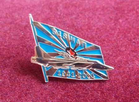 В паре с этим знаком шёл значок в виде флага ВВС с наложенным самолетиком. Надписи: "518 иап" и "1941-2011". На цанге.