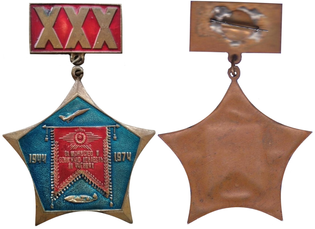 Вот такой знак попался на глаза. Местный выпуск, алюминиевая пластина на игле. Информации на знаке, по которой можно что-то определить - минимум. Силуэт самолета на знаке похож на дальний бомбардировщик, знамя и лента наталкивает на мысль, что что-то Краснознаменное. Кто возможно что-то знает по этому знаку, прошу подсказать. Фото только такие. Заранее спасибо.