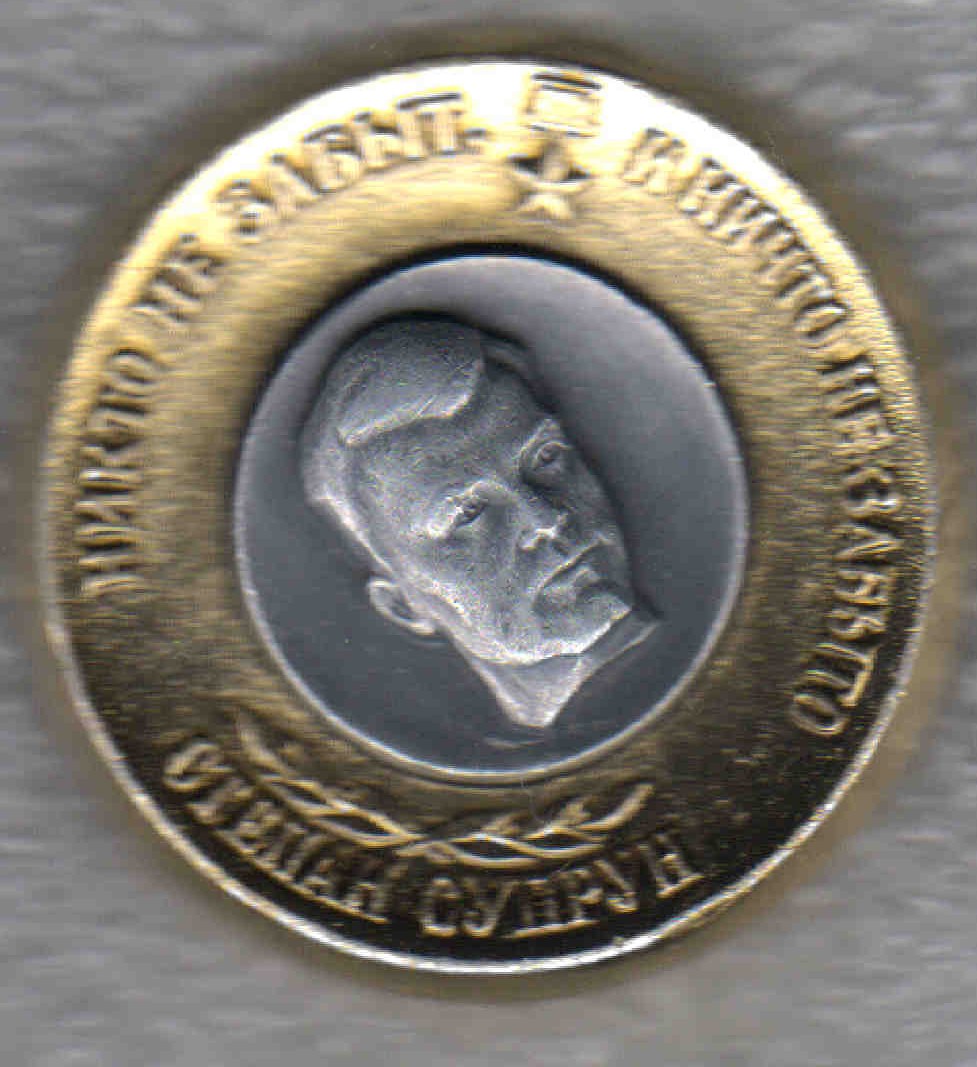 Памятная медаль «100 лет со дня рождения Б.Ф. Сафонова» представляет собой золотистый круг, диаметром 32 мм.