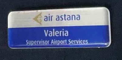 "Station Manager" - начальник представительства Air Astana в аэропорту. Он носит бейдж с золотистой верхней половинкой, с указанием не только имени, но и фамилии: