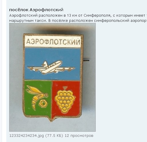 Разноцвет герба посёлка Сокол (ныне микрорайон города Улан-Удэ), в нём находится управление аэропорта Улан-Удэ.Dude писал(а) Пн, 22 май 2023 06:13:02: ↑ Значки снизу были найдены на замечательном сайте ussrtownpins.com, где представлена обширная коллекция значков с гербами и эмблемами сотен населённых пунктов бывшего СССР.