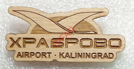 Аэропорт Храброво (Калининград). Латунь, синтетическая смола, булавка, 52 мм х 32 мм.