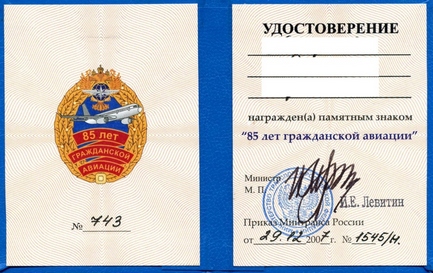 Может кому интересно, "министерское" удостоверение к знаку 85 лет ГА