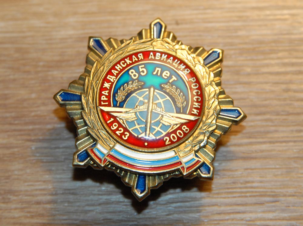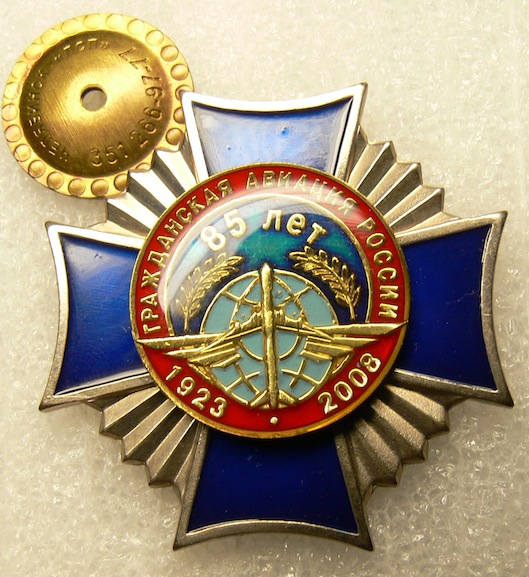 (Причем (об этом уже говорили, по-моему) Министерство вручало знаки более тяжелые, китайского производства, Росавиация - более легкие с контррельефом, отечественного производителя (как на заколках, так и на винтах)).