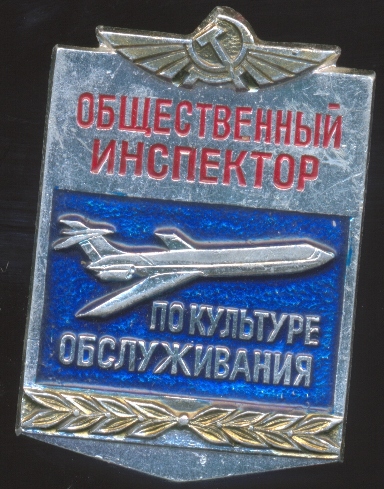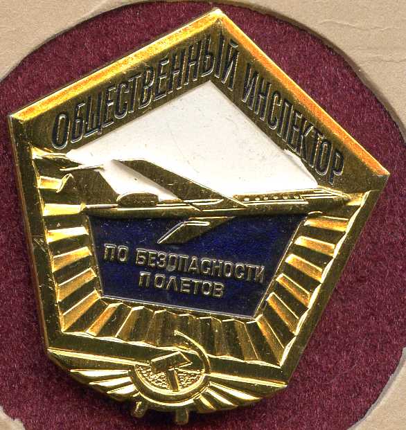 А пассажиры и не могли запутаться, так как эти знаки исключительно для сотрудников Аэрофлота, являющихся общественными инспекторами, соотв. которые должны были носиться (в реале почти никто не носил) при выполнении служебных обязанностей на своих раб. местах и которые должны были выполняя сл. обязанности еще и общественно бдить за безоп. полетов.GVF писал(а) :"Общественные инспектора" по : безопасности полетов, по культуре обслуживания и просто общественный инспектор. Для пассажиров, чтоб в инспекторах не запутались.