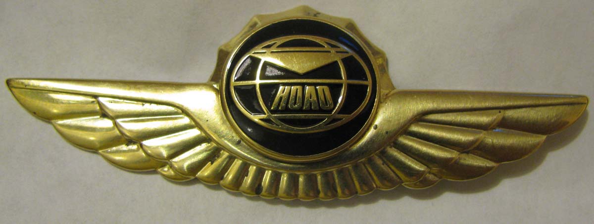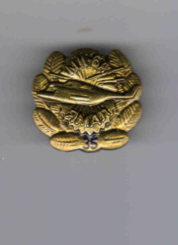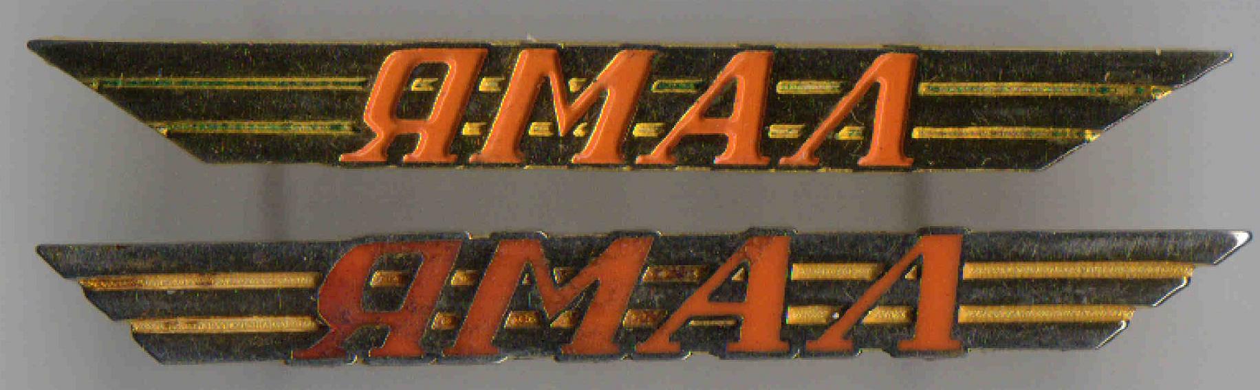 Нагрудный знак бортпроводника авиакомпании "Ямал". У знаков, кроме цвета, разная длина надписи и толщина знаков - верхний 1,2 мм, нижний 1,4 мм.