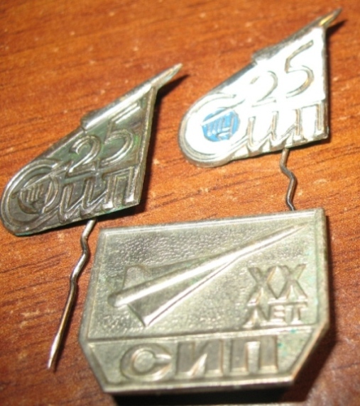 Это комплект к 60-летию ЛИИ им. М.М. Громова. Знак и зажим для галстука помещались в пластиковую коробочку характерной формы, поэтому среди распространителей данной продукции этот комплект ласково назывался "гробик" :-)
