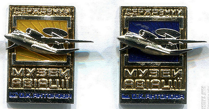Музей ВВС. Верхний выпущен Мытищинским заводом опытных и сувенирных изделий, а нижний - Московским экспериментальным заводом спортивных сувениров и знаков.