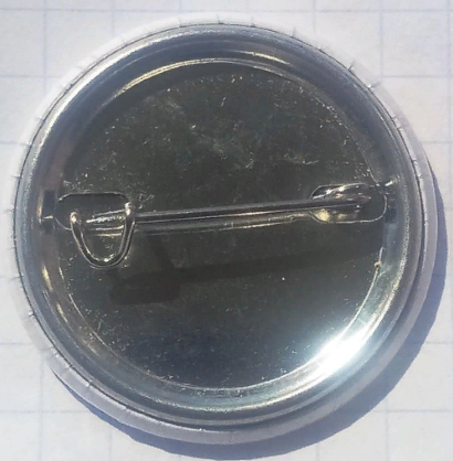 Вот ещё один знак. Алюминий, холодная эмаль, булавка, диаметр 34,5 мм. Реверс чистый.