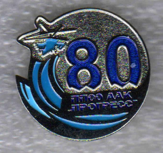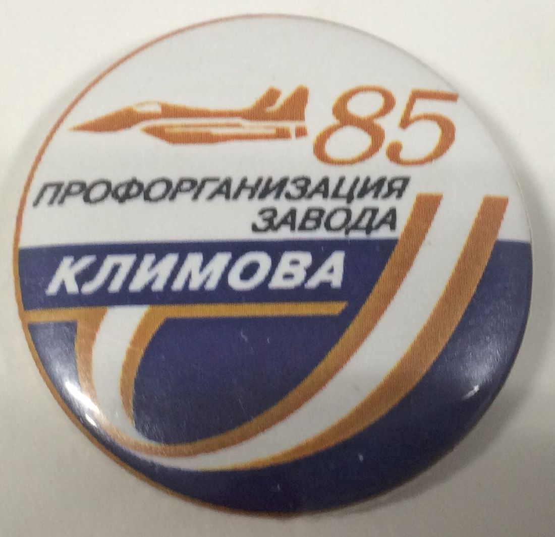 Казанское проектное бюро машиностроения ныне КПП ОАО "Авиамотор" к 70-летию Профавиа. Нейзильбер, золотистого цвета, булавка, диаметр 40 мм. Реверс чистый, мелкая насечка.