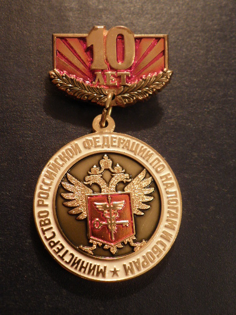 (Дело в том, что я пока ни разу не видел ОФИЦИАЛЬНО учрежденной награды ни МНС России, ни ФНС России, которая имела бы винтовое крепление. Единичные экземпляры такого исполнения знака "Отличник МНС России" (для распространения среди коллекционеров) в расчет я при этом не принимаю).
