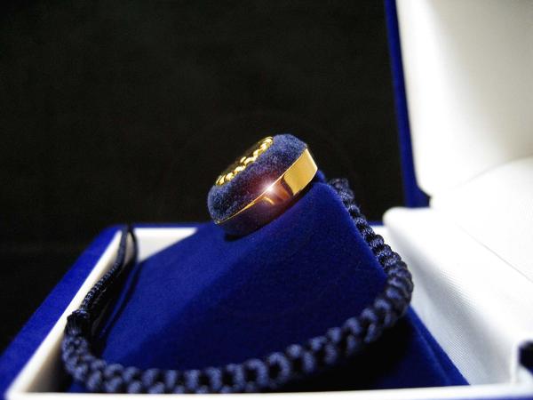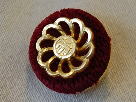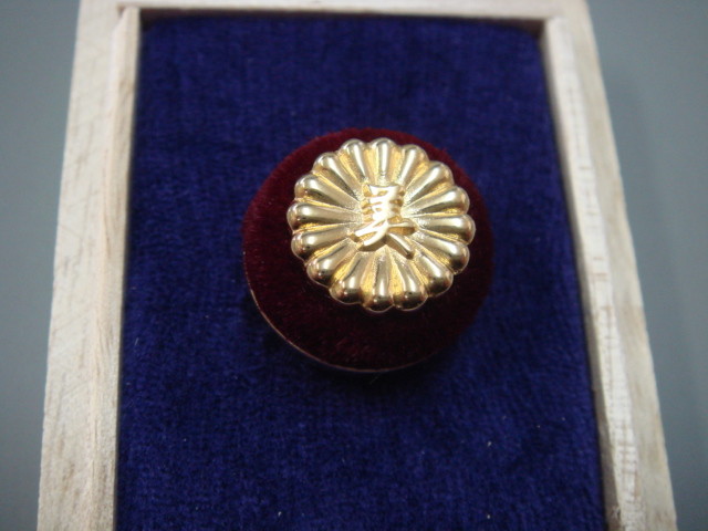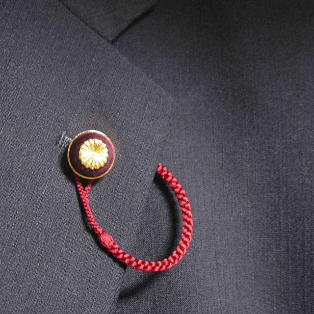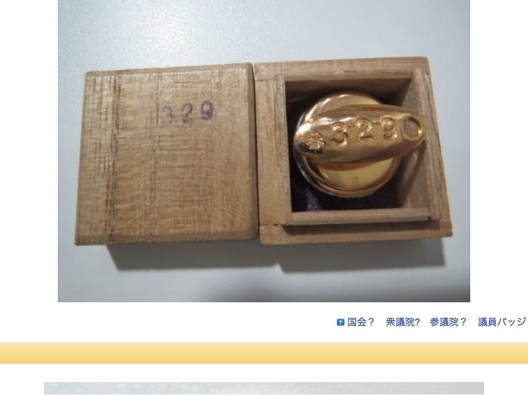 насколько я разобрался в тонкостях автоперевода с японского - это значок депутата городского совета, который имеет стаж депутатской работы 15 лет. О чем свидетельствует камень в центре значка - рубин.