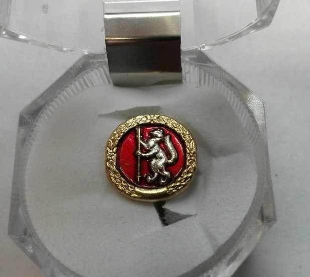На оборотной стороне знака располагается (цанговое) крепление для ношения на одежде»