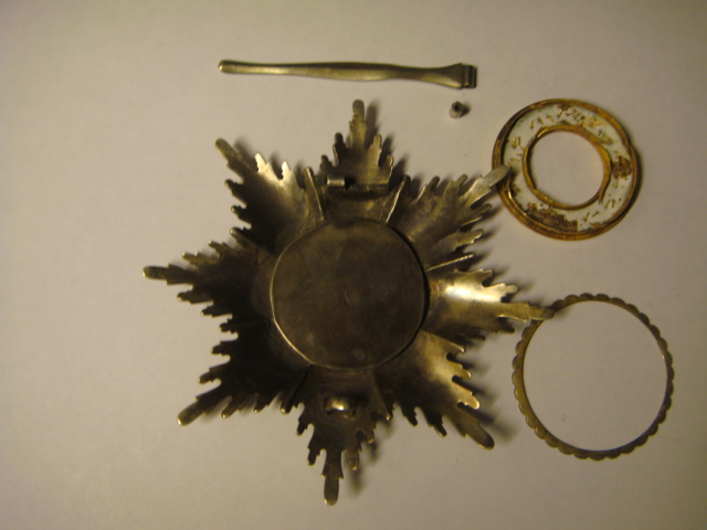 Я звезды не разбирал, наверное эта подкладка для того, чтобы медальон не проворачивался. Думаю, что в ремонте это уже не важно, позолоченный он должен быть или нет.