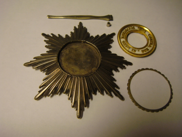 Я звезды не разбирал, наверное эта подкладка для того, чтобы медальон не проворачивался. Думаю, что в ремонте это уже не важно, позолоченный он должен быть или нет.