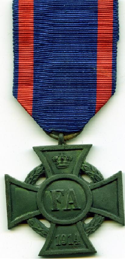 Эскиз для медали был сделан флигель-адъютантом Великого Герцога полковником фон Джорданом. Награждались крестами ФА за отличия и заслуги в войне офицеры, унтер-офицеры и рядовые герцогства Ольденбург и других земель, с которыми у Ольденбурга были близкие связи.