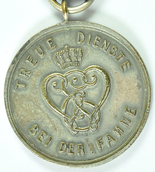 Аверс ; коронованным вензель Великого герцога Вильгельма Эрнста в центре и надпись по кругу «TREUE DIENST BEI DER FAHNE» (верная служба под знаменами)