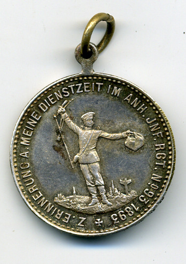 Аверс; портрет герцога Фридриха I смотрящего вправо, одетого в форму 93-Ангальтского пехотного полка .