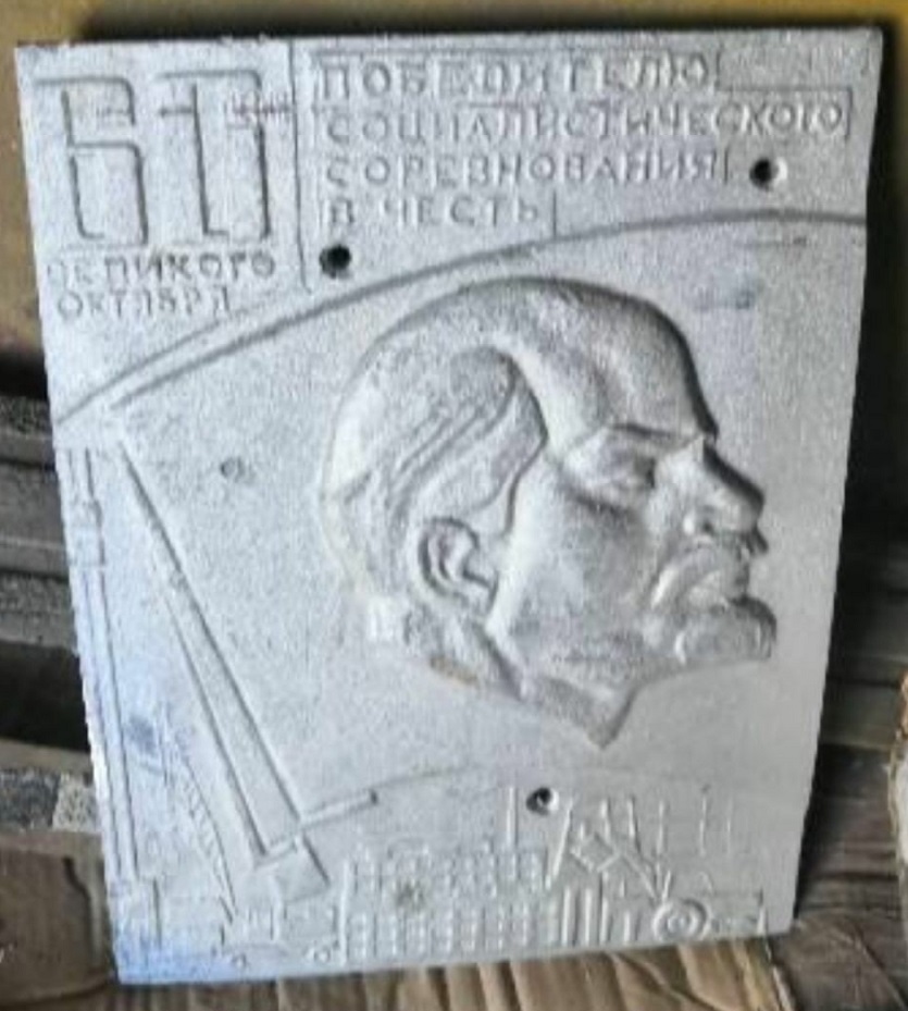 ИзображениеВстретился на моем жизненном пути вот такой предмет, своеобразная увеличенная копия редкого нагрудного советского знака. Думаю коллективная награда. Плакетка находилась в бывшем музее бывшего орденов Ленина и Трудового Красного Знамени Рыбинского завода полиграфических машин и я успел её перехватить перед тем, как оставшиеся после разгрома музея экспонаты отправились на свалку.