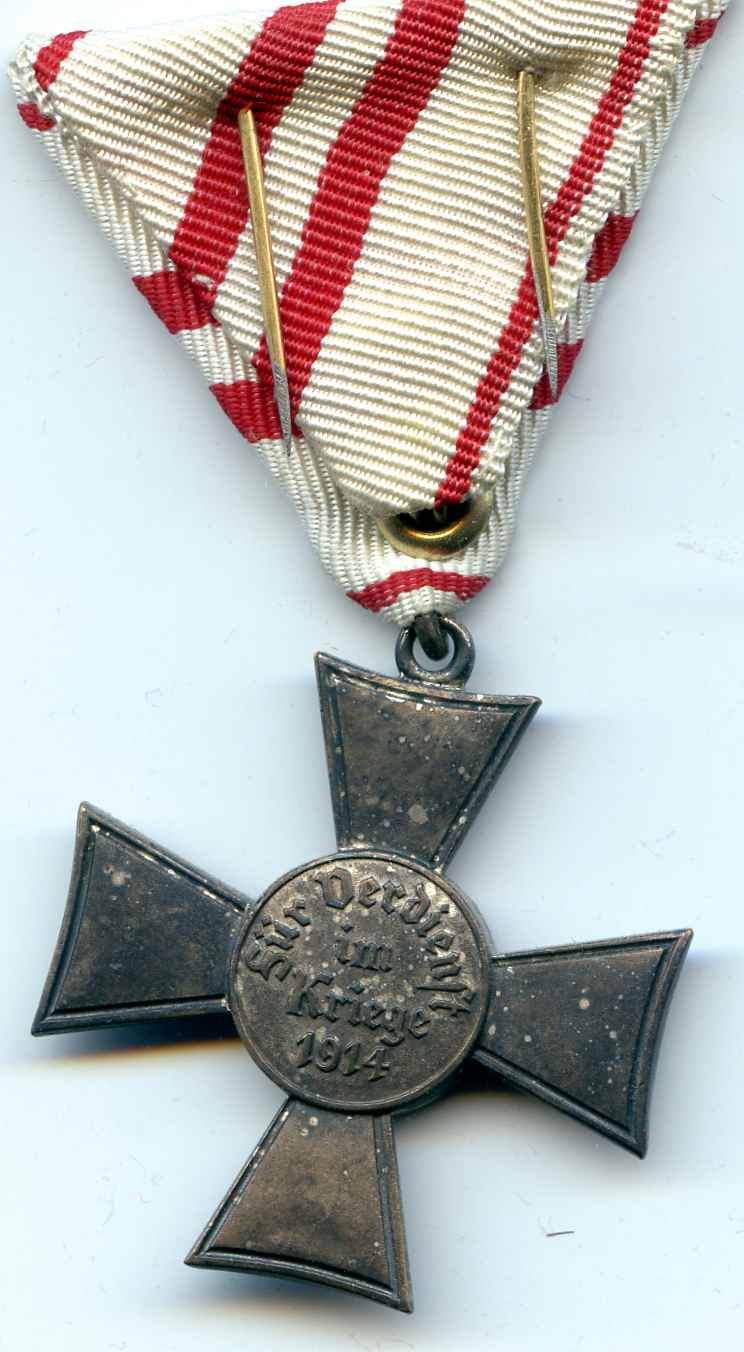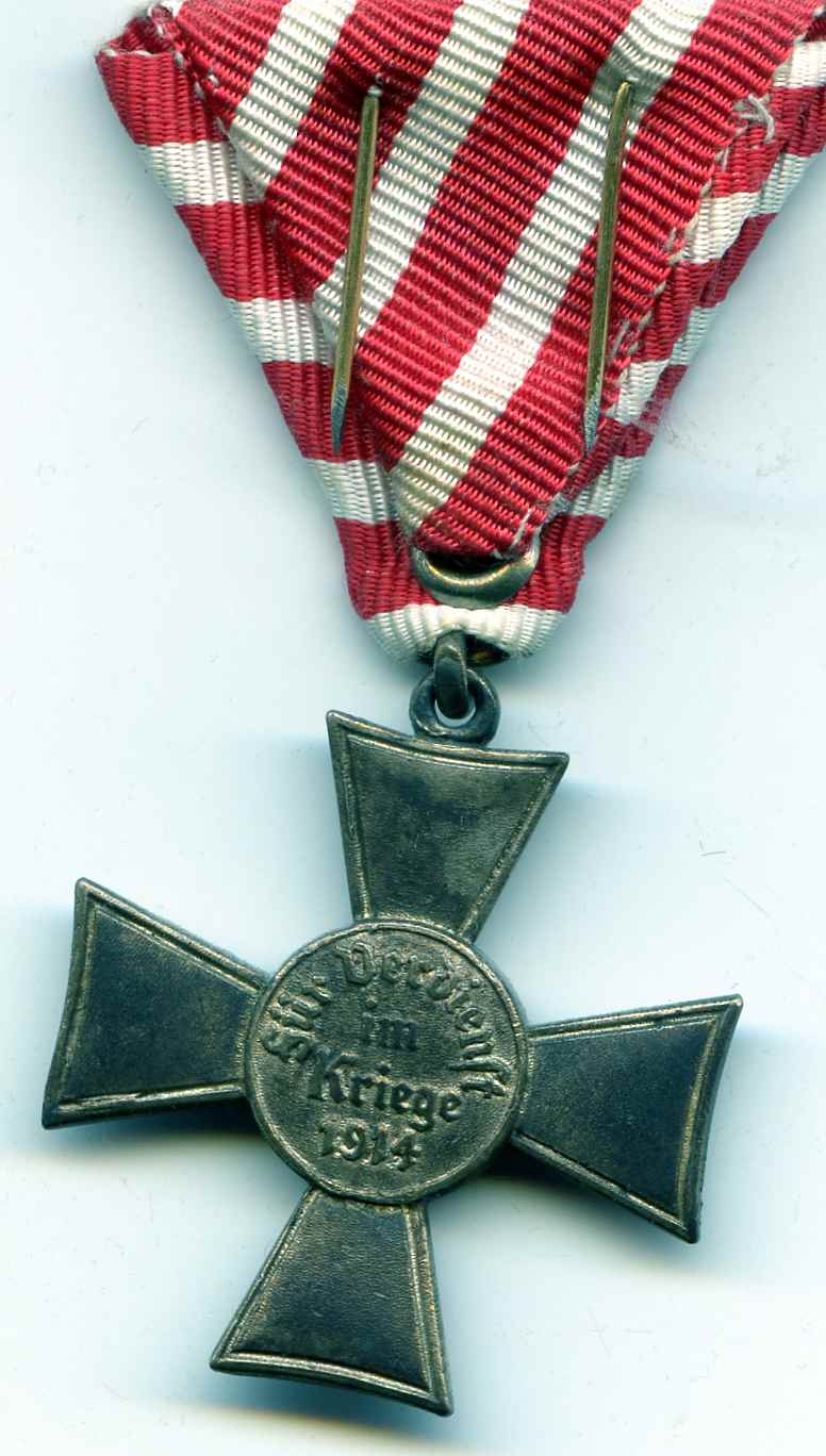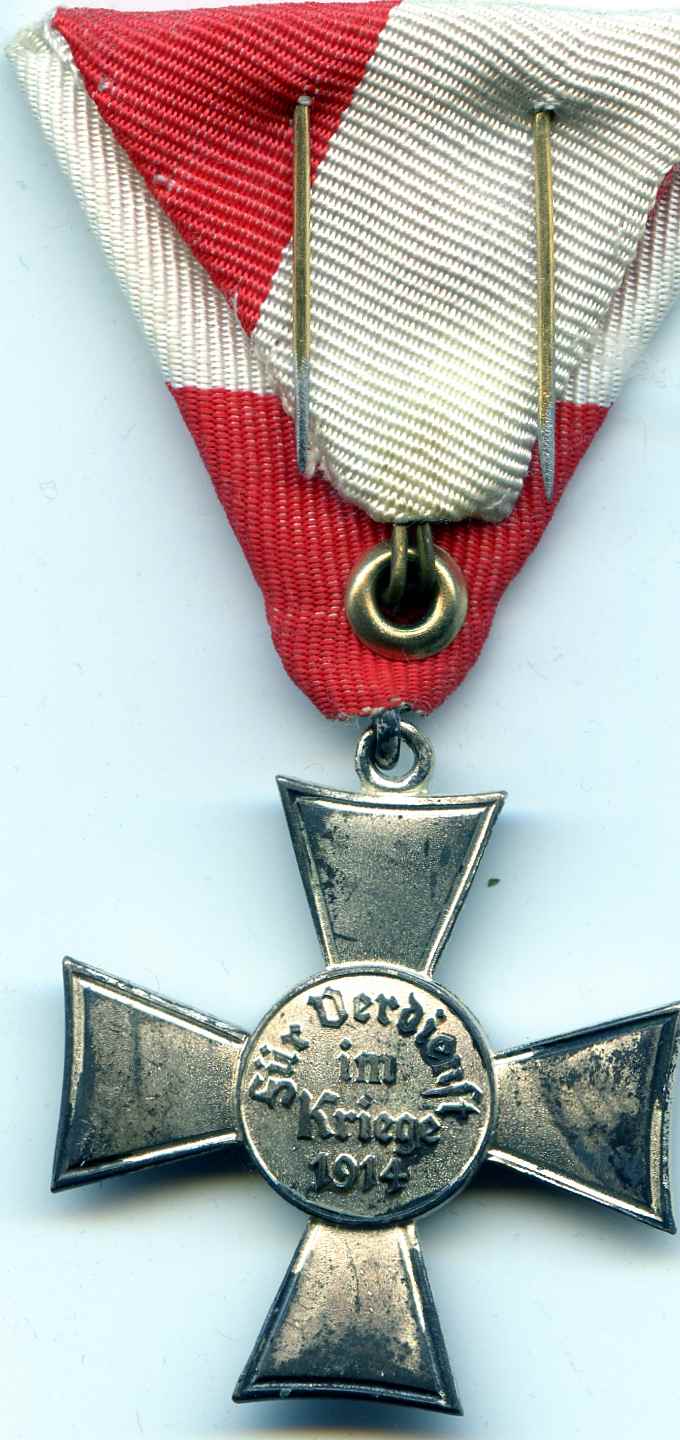 Реверс - посеребренный с круговым центральным медальоном вписано `Für Verdienst im Kriege 1914' (для заслуги в Войне, 1914)