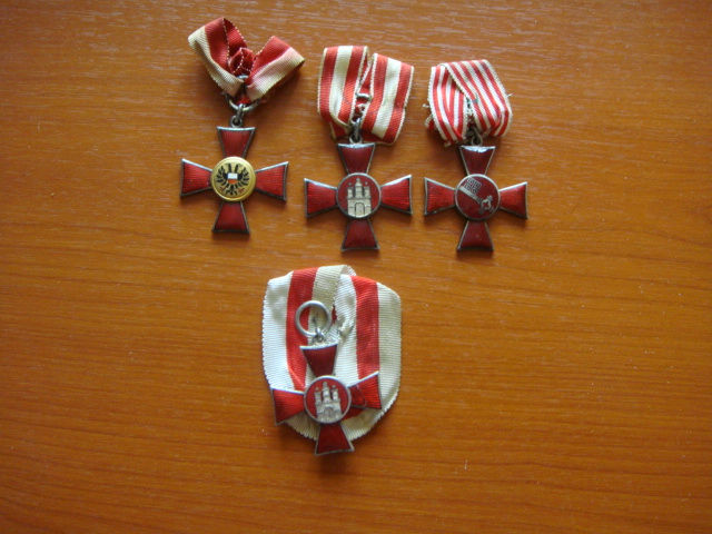 По поводу ленты. Дело в том, что у этой награды была только одна вариация ленты. В отличие к примеру от Железного Креста, где была обратная расцветка ленты, для награждения за не боевые заслуги. Думаю, что у вас такое же предположение возможно было. Но повторюсь, не было у ганзейского креста города Гамбурга таких вариантов ленты. Скорее всего сборщик колодки или пошутил, или не имел в тот момент оригинальной ленты, или поэкспериментировал с другой лентой. На намотке все равно видны только бело-красные полосы, а этого достаточно.любитель2 писал(а) : Пока не получил ответ по ленте на Гамбург.