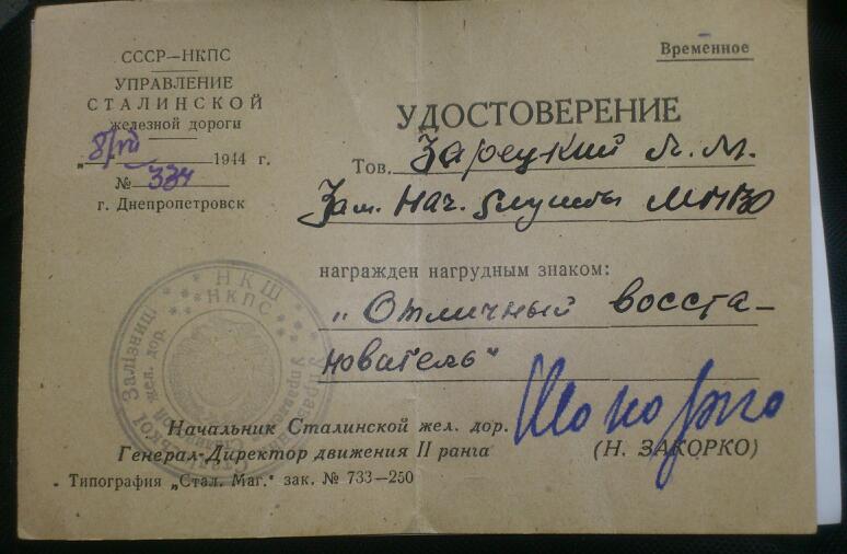 • быстрого восстановления железнодорожного хозяйства на территории, освобожденной от фашистских захватчиков;
