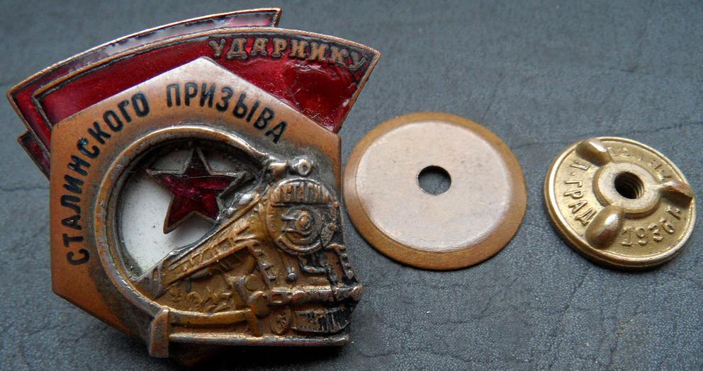 Мой дед был награжден значком «Ударнику сталинского призыва» (и "Отличный паровозник"). К сожалению, никаких документов не сохранилось, есть только номер на самом значке "4327".