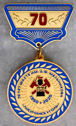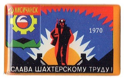 Автор значков долгое время проживала в Лисичанске, поэтому, по всей видимости, добавила название и этого города на заглавное изображение, тем более, что именно с Лисичанска и началась добыча угля на Донбассе.