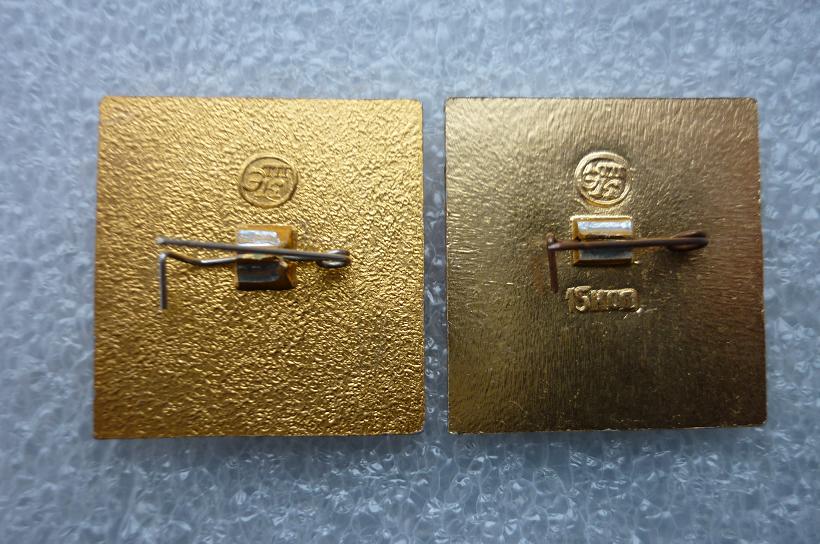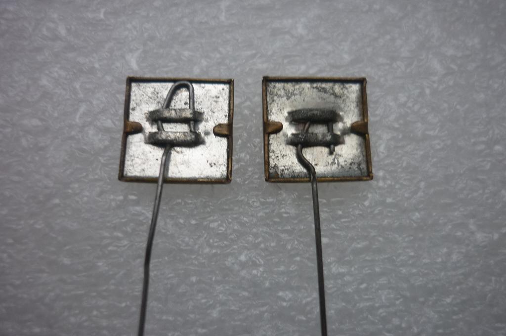 Фото знака на 1 стр. Значок размером 9х9 мм. Рамка из латуни. Крепление - усики. Картинка - оргстекло.