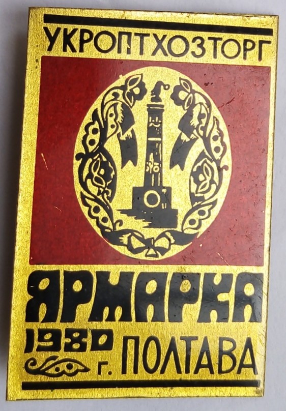 Алюминий. Размер значка продторга Киевского района города Симферополь - 52х52мм, выпущен в 1984 году к 200-летию города.