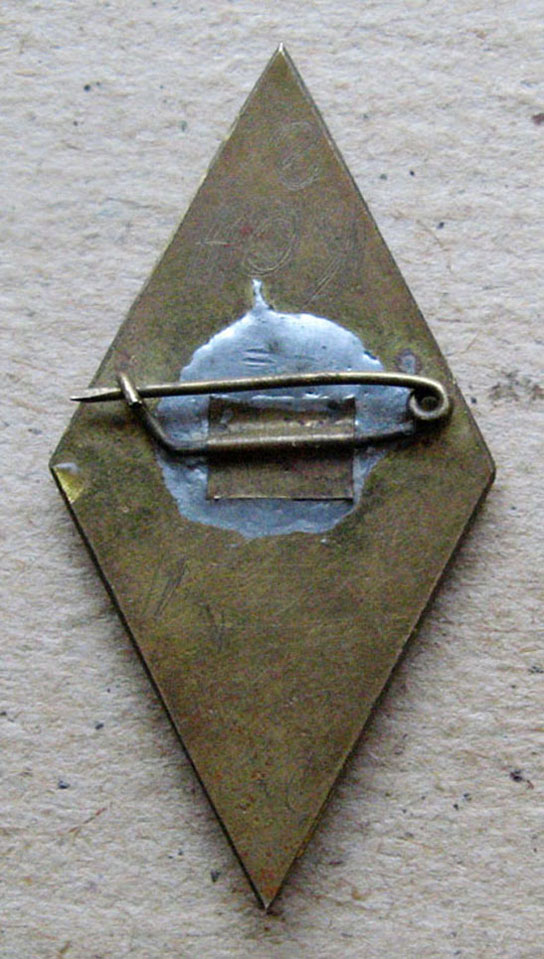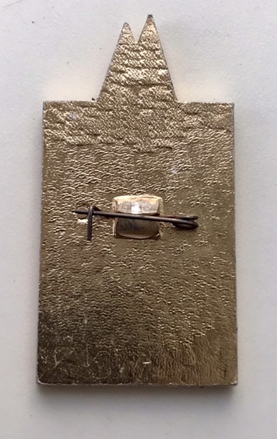 третий значок - лицевая сторона получилась полностью без анодирования (серебристый цвет) - вероятно, производственная недоработка, так как обратная сторона у него имеет очень слабое бледно-золотистое анодирование.